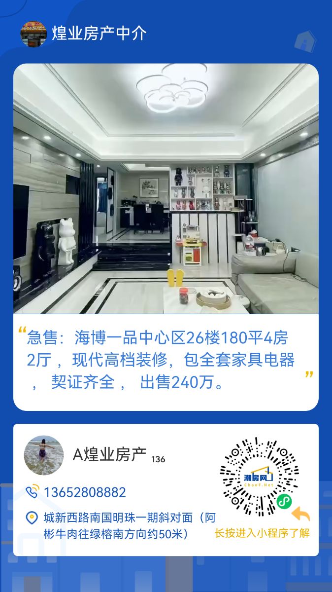 正文摘要:海博一品中心區(qū)26樓180平 ,現(xiàn)代高檔裝修,包全套家具電器 , 契證齊全 , 出售200萬。 聯(lián)系136 5280 8882 |