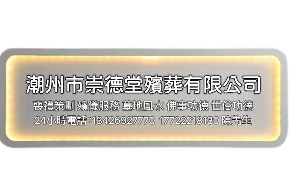 潮州市崇德堂殯葬有限公司——脫穿壽衣、殯儀服務(wù)、喪禮策劃 民俗喪事一站式服務(wù)公司 報(bào)喪電話:13426927770、17722218130 陳先生(佳弟) 公司地址:潮州市湘橋區(qū)北園路若娥樓西側(cè)1號(hào)鋪【崇德堂】 |